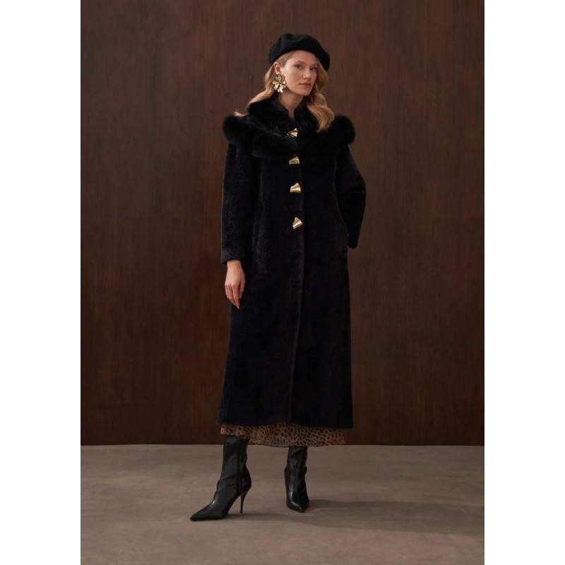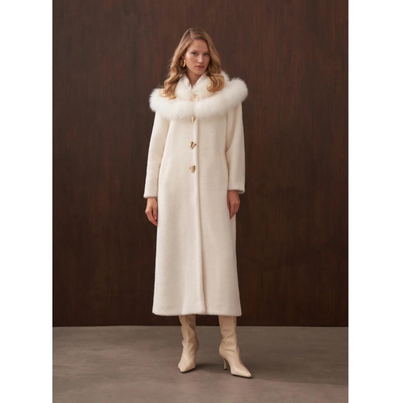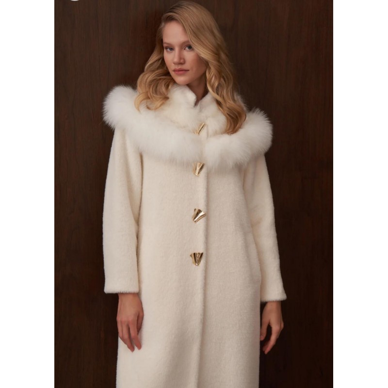 Yeni Ürün Omuzu Kürk Detaylı Düğmeli Angora Kaban