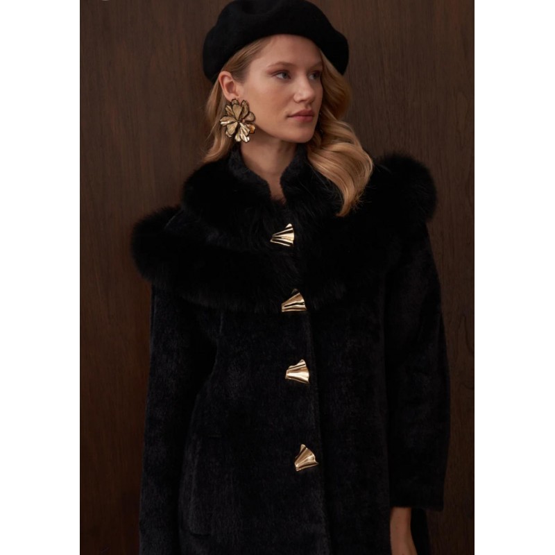 Omuzu Kürk Detaylı Düğmeli Angora Kaban