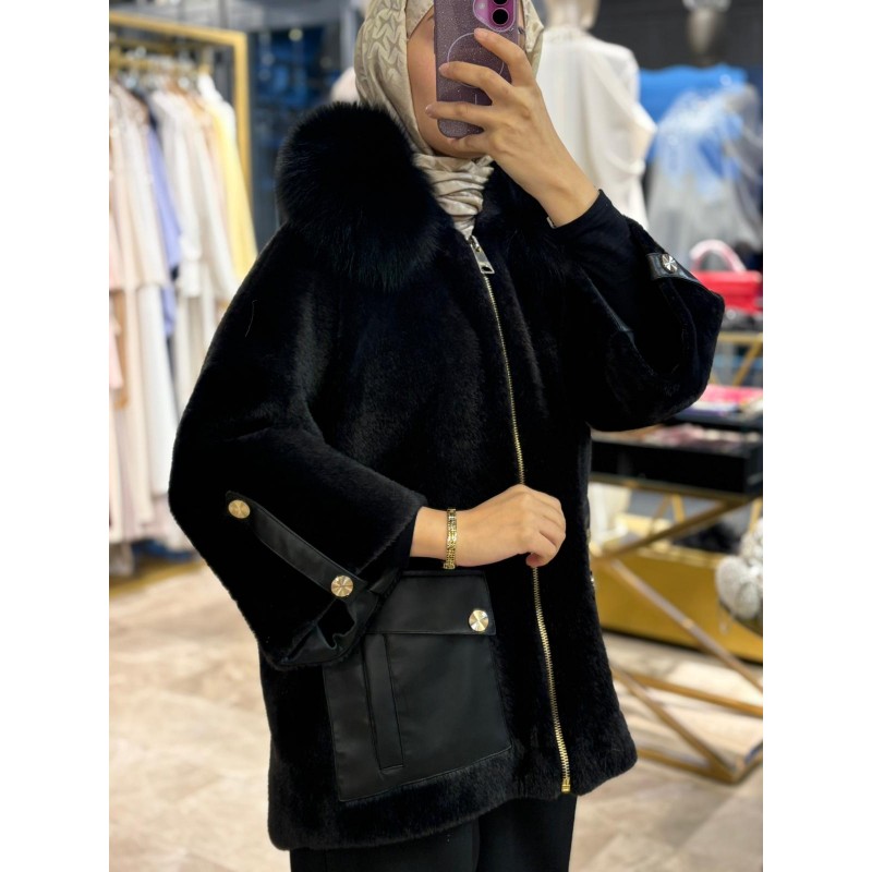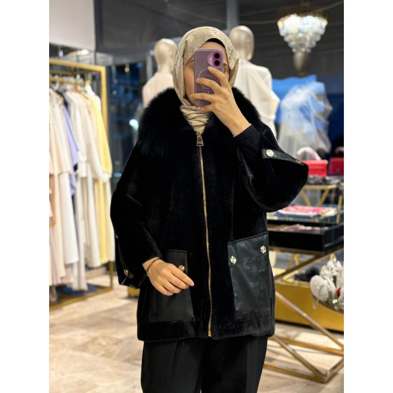 DERİ CEP DETAYLI ANGORA KÜRK.