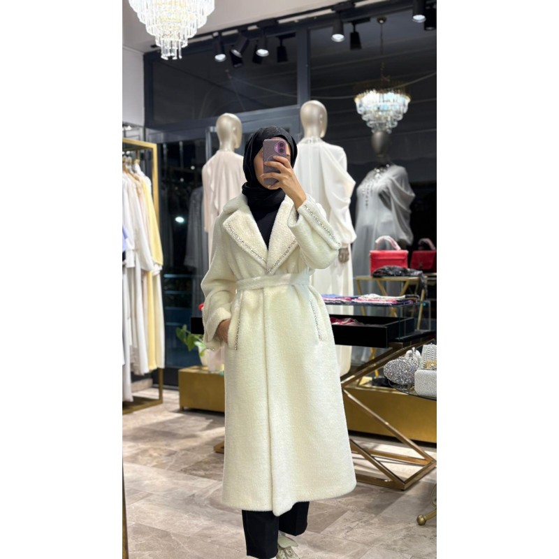 TAŞ DETAYLI ANGORA KABAN.