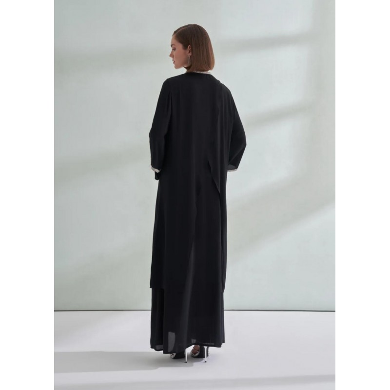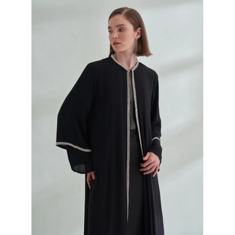 KOL UÇLARI VE BOYDAN TAŞ İŞLEME DETAYLI ABAYA.