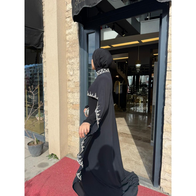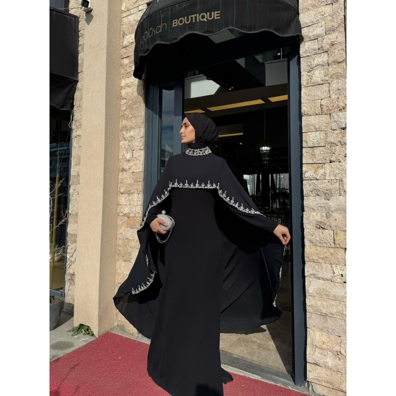 PELERİNİ TAŞ İLEMELİ ELBİSE.PELERİN AYRI GİYİLİYOR...