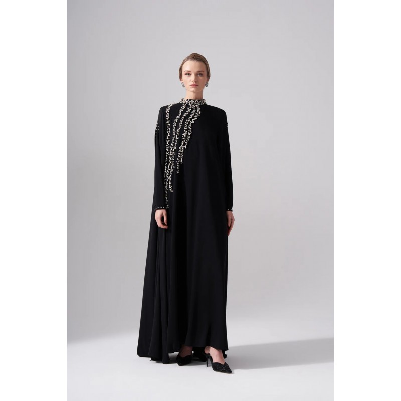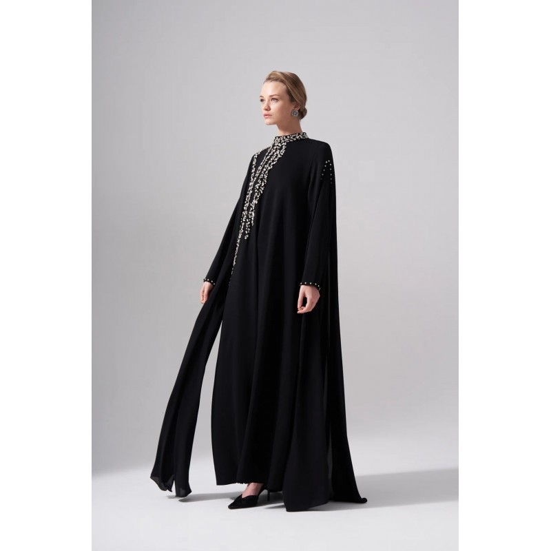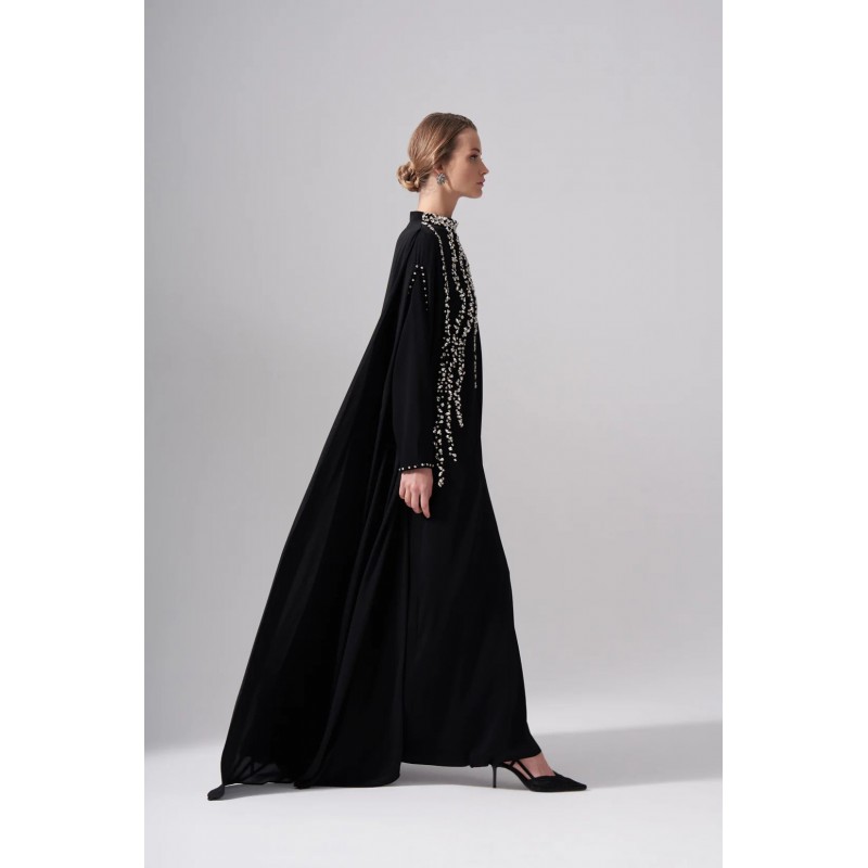 Ürünün bedeni krep pelerin detayları şifon kumaştan üretilmiştir.
