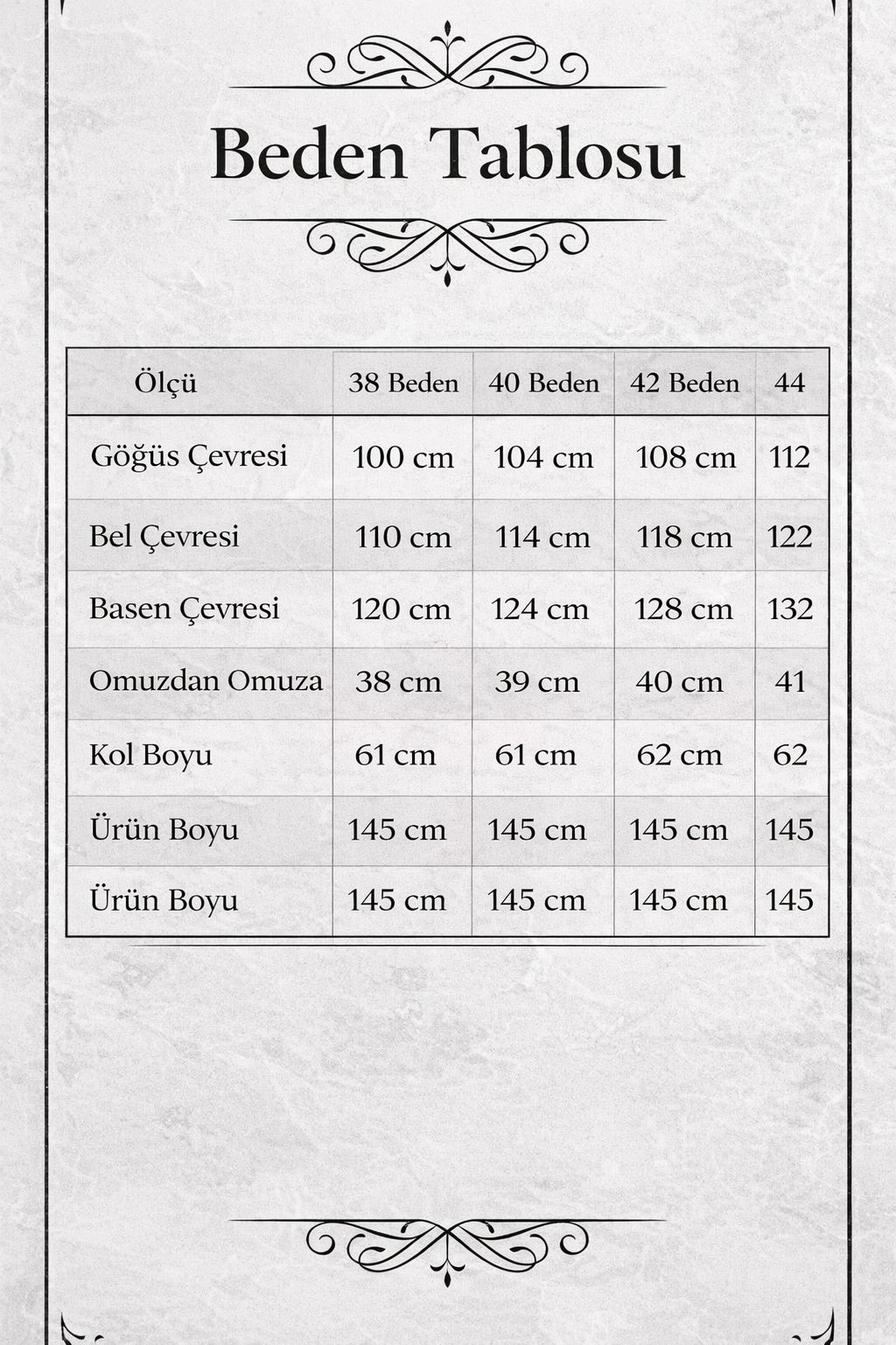 Ürünlerimiz rahat kalıp olarak tasarlanmıştır. Ölçü tablosunu dikkate almanız önerilir.