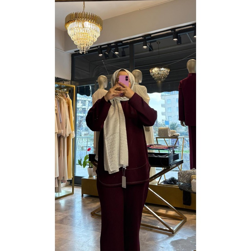 Oysho kumaş bordo bol paça takım, gün boyu rahatlık sunarken modern duruşuyla her ortamda dikkat çeker. Yumuşak dokulu, esnek ve akışkan yapısıyla öne çıkan özel Oysho kumaşı, nefes alan yapısı sayesinde vücudu sarmaz, hareket özgürlüğü sağlar.